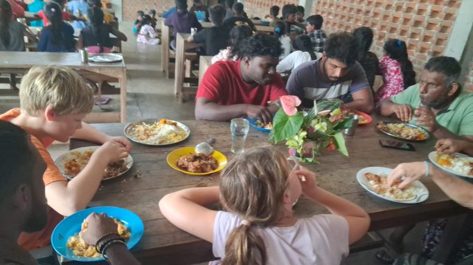 Während der Duft der selbst zubereiteten Gerichte den Raum erfüllte, nutzten wir die Gelegenheit, unser Herzensprojekt S.T.E.P.S. of Forgiveness vorzustellen. Mit leuchtenden Augen und aufrichtiger Begeisterung hörten die Jugendlichen zu, stellten Fragen und tauchten in die Vision ein, die uns alle verbindet: Bildung, Versöhnung und Hoffnung für Kinder und Familien in Sri Lanka.